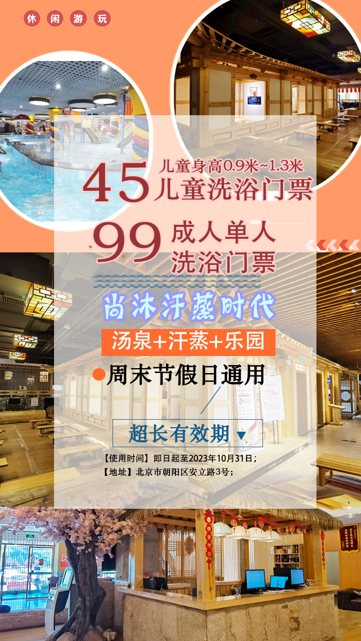 超长有效期!【尚沐汗蒸时代】¥45元起抢汤泉洗浴体验!一票畅玩水上乐园+汤泉+汗蒸+儿童乐园